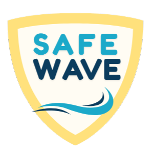 Logo with the words 'SAFE WAVE' inside a shield and a wave design underneath.